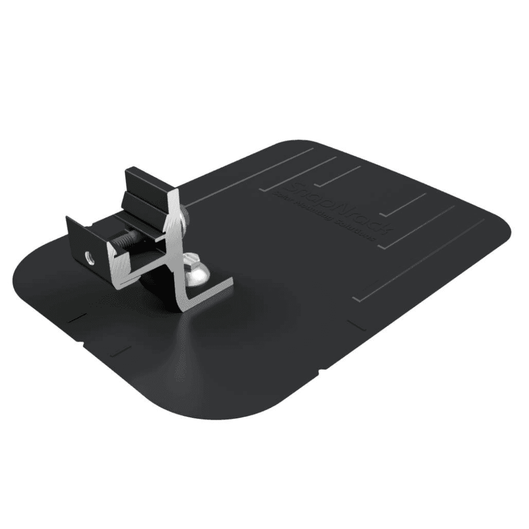 While butyl mounts have quickly become the most popular way to mount solar racking systems to comp shingle roofs, the standard metal flashing is still a long standing, traditional way to flashing roof penetrations on steep slope shingle roofs. The Umbrella Mount gets it's name from the unique design of a metal flashing that raises up through the L foot, above the water level, and tucks under the stainless steel cap lined with an EPDM gasket. The design is built to withstand the elements on the roof and last the lifetime of the PV and roofing system.